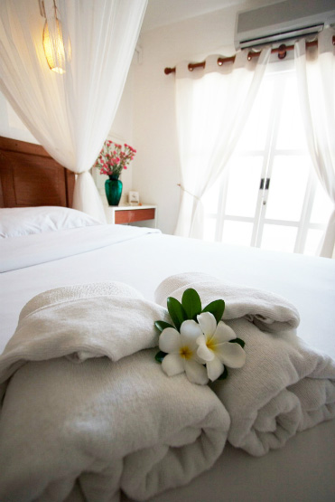 ห้องพัก Superior room เป็นห้องพักขนาดย่อมสามารถพักได้ 2 ท่าน เป็นห้องพักที่ไม่ติดทะเลและมองไม่เห็นทะเล อยู่โซนหมู่บ้านตะเกียบ (ที่ตั้งแยกกันคนละที่กับบ้านกางมุ้ง โซน On the beach) ทางเดินลงทะเลเป็นซอยสาธารณะติดกับที่พักเดินลงทะเลได้ประมาณ 40 เมตร ที่จอดรถจะอยู่ซอยตรงกันข้ามกับบ้านกางมุ้งประมาณ 15 เมตร มีกล้องวงจรปิดอยู่บริเวณที่จอดรถ
